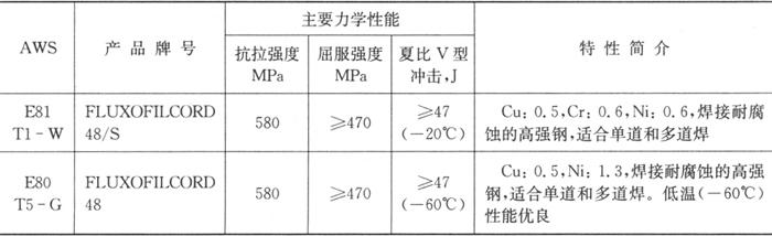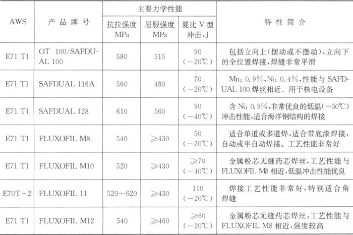 表1.4-12 SAF-OERLIKON生产的低合金钢气保护(MIG/MAG)药芯焊丝的牌号及用途