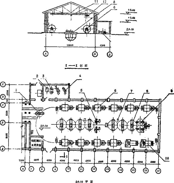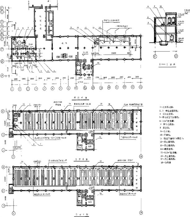 图7-5 某厂石膏模型车间工艺布置平、剖面图
