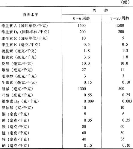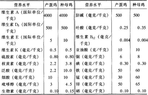 表5-13 产蛋期蛋用鸡的维生素、亚油酸及微量元素需要量