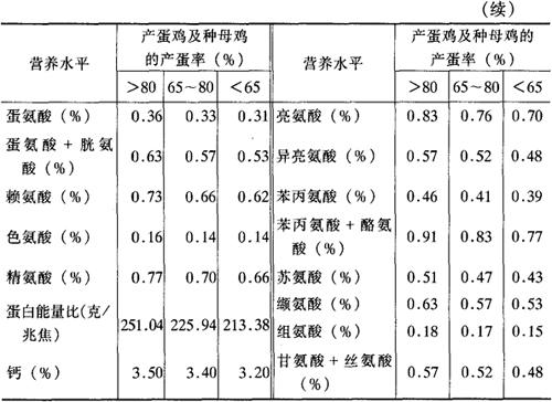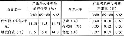 表5-12 产蛋期蛋用鸡及轻型种母鸡的饲养标准