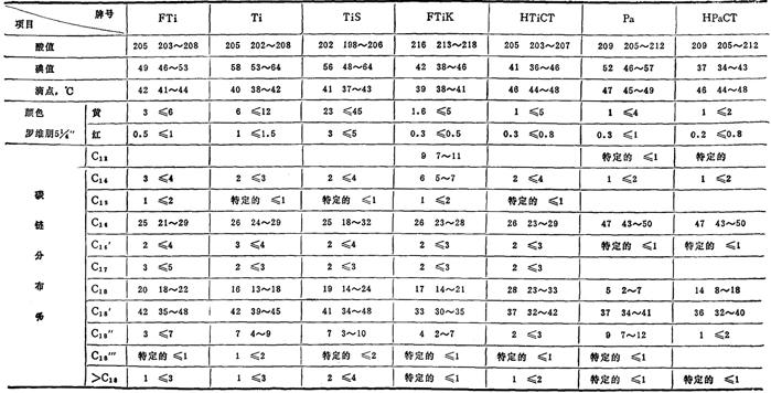 国外质量规格参考(汉高公司;汉高公司马来西亚厂;马来西亚南方油脂公司)