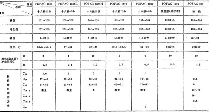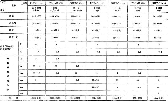 注:除油酸为180kg桶装外,其余均为25kg袋装。