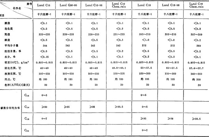 日本日产化学公司脂肪醇(蜡裂解烯烃制羰基合成醇) 蜡裂解烯烃制羰基合成醇
