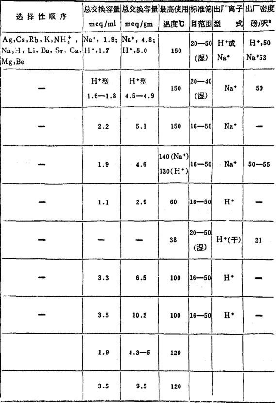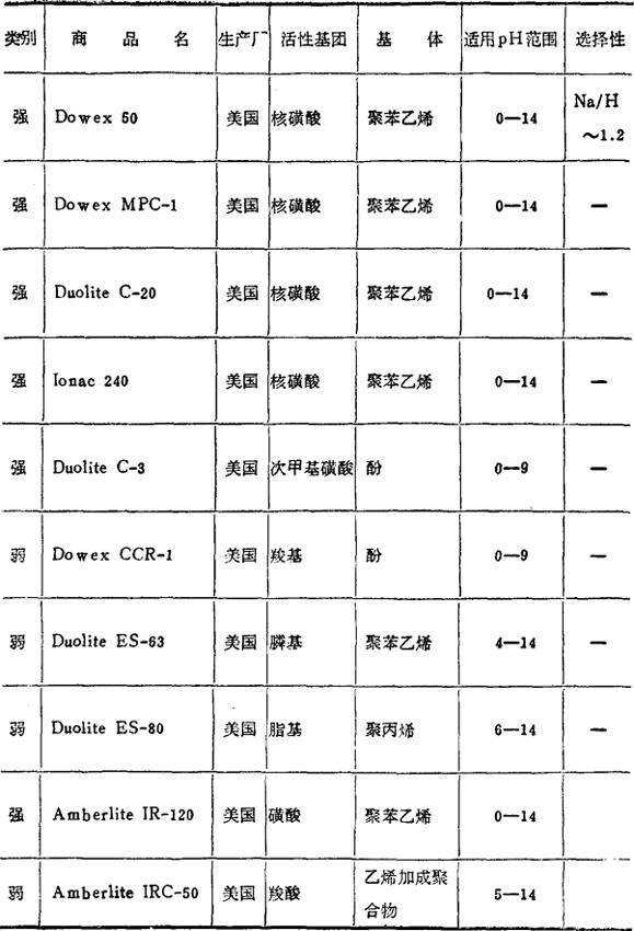 国外阳离子交换树脂的规格性能