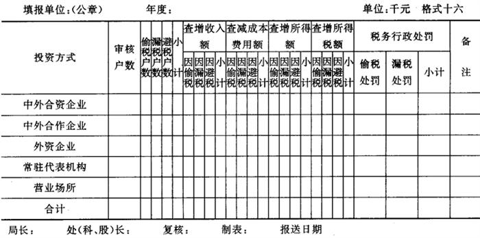 外商投资企业和外国企业所得税纳税检查情况汇总表