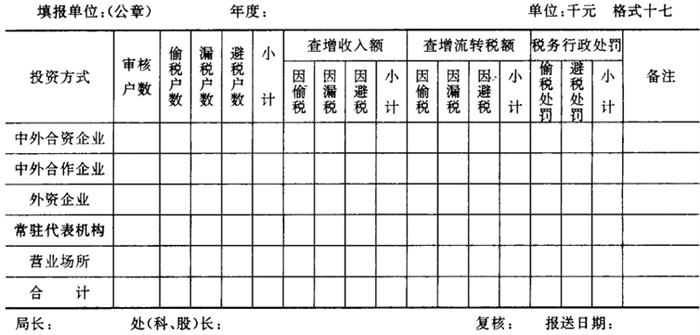 | 释义 | 国家税务总局涉外税务检查规程(试行) 涉外税务检查是税务机关依据国家税收法律、行政法规和规章的规定对外商投资企业和外国企业(以下简称企业)以及外籍个人,包括港澳台同胞(以下简称个人),履行纳税义务情况进行分析、审查,以确认其是否依法正确计算缴纳税款的专业检查。涉外税务检查的目的的是通过对企业和个人的检查,从征纳双方两个方面了解国家涉外税收法律、行政法规和规章的贯彻执行情况,以便达到堵塞漏洞,防止和处理偷、漏、避税,减少税款流失,强化涉外税收管理,促使企业和个人依法纳税,促进公平竞争。因此,涉外税务检查既是维护国家公益,促进经济正常发展的重要手段,又是一项专业性、政策性、法律性很强的工作,为了使这项工作经常化、程度化、规范化、科学化,现结合一些地区几年来开展涉外税务检查的工作实践及经验,特制定本规程。 一、检查的方法和重点 涉外税务检查的方法和方式,以被检查的资料范围为标准,可分为详细检查和抽样检查;以检查工作的执行地点为标准,可分为就地检查和报送检查;以检查的期间为标准,可分为定期检查和不定期检查。各地应根据所管理的企业和个人申报纳税等具体情况,依据税收、收务、会计等法规规定以及上级税务机关对税务检查工作的布署,制定本地区年度、委度、月份涉外税务检查计划,确定检查范围和重点,选择适当的检查方法,确保检查质量和效率。 企业纳税检查重点选择原则是: 1.生产经营规模较大的重点税源企业(确定标准可根据本地区的实际情况,采取按投资总额、经营收入、经营利润额、亏损额等指标序列以及财务指标比率序列的分析等情况确定); 2.历年(或历次)检查以及日常检查中发现偷、漏、避税问题较多、较严重的企业; 3.长期亏损企业(连续二年以上)和进入征税期当年利润额陡降以及突变亏损的企业; 4.与设在避税港或低税率地区的关联企业发生业务往来的企业; 5.跳跃性盈利的企业(幅度在10%以上); 6.比同行业盈利水平低的企业; 7.被举报有偷、漏、避税行为的企业; 8.符合本地区纳税检查需要的其他特殊企业; 个人纳税检查重点的选择原则是: 1.工资、薪金收入申报明显低于正常收入水平的; 2.个人收入申报资料时有短缺或有明显疑点的; 3.经常被发现有隐瞒收入的(二次以上)。 二、检查的幅度和组织形式 年度检查的面(包括重点检查和日常检查)一般不少于纳税企业和个人的30%。重点检查的面一般不少于年度检查面的50%。确定检查任务之后,在具体检查时,各地可以根据征税收征管工作中所掌握的材料和情况,合理组织检查力量,点面结合,以点为主,并应注意以下几点: 1.被检查企业和个人,凡符合以下条件的,可以投入少量人力,选择对税收有较大影响的有关会计科目,或个别经营项目进行检查。 (1)历年检查中没有发现重大偷、漏、避税问题(二年以上); (2)注册会计师提供的查帐报告较为详细准确,资料齐全; (3)在分析性复核中无重大异常变动; (4)企业组织结构和资本情况无重大变动; (5)扩大经营范围在原范围10%以内变动; (6)其他业务收入占经收入总额的比重正常; (7)各种经济、财务指标比率和同行业相比适当。 (8)影响个人收入的因素以及申报资料内容等无重大变化。 2.凡部分满足上述1款所列八个条件(指一个或二个条件不能完全满足的)的企业和个人,应当投入较多力量,对相当的会计科目及有关凭主以及个人收入来源情况进行较全面的检查。通过检查,分析疑点和找出问题所在,重点突破。 3.凡上述1款所列八个条件大部分不能满足的企业或个人(仅能满足一个或二个条件的),应进行全面详细的检查。 为了提高检查工作效率,可以根据企业或个人被查内容的复杂程度和税务机关的检查力量,采取由涉外税务专职检查机构进行。对税源大或帐目混乱,存在问题较多,较严重的重点纳税企业或个人,可以采取联合检查,由税务机关临时抽调其他部门的人力,协助涉外税务部门联合执行。 三、检查的具体步骤 为了使检查工作减少盲目性、承随决心性,必须按计划、有目的、分步骤地进行。对企业或个人进行纳税检查时,一般采取以下步骤: (一)案头计划和准备阶段。检查之前要全面熟悉被查企业或个人经营、收入、财务核算、纳税等情况、确定检查项目、内容、安排检查时间,做好种项准备工作。计划和准备阶段具体工作有: 1.全面了解企业的经营或个人收入等情况,查阅企业或个人的有关纳税资料以及财务会计制度,并完成《企业基本情况表》(见格式一A)和《个人基本情况》(见格式一B); 2.向主管税务人员了解被检查企业或个人的有关纳税情况,对被查纳税期资料与可比纳税期资料进行对比分析,了解企业或个人税收变动情况,完成《企业或个人纳税情况分析表》(见格式二); 3.查阅并分析被查企业的会计报表情况,对影响税收和财务比率进行分析,用于反映企业在同行业中的地位,同历史相比的差异,从中找出对税收可能产生影响的问题,并完成《财务比率分析表》(见格式三)。除此之外,还可按照财务通则的要求,在评价企业财务状况和经营成果的财务指标时,根据情况选用: (1)流动比率 (2)速动比率 (3)应收帐款周转率 (4)存货周转率 (5)资产负债率 (6)资本金利润率 (7)营业收入利税率 (8)成本费用利润率等。 4.根据上述调查了解的企业或个人有关纳