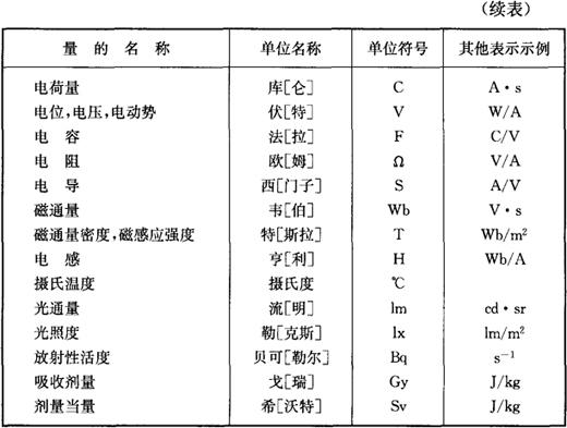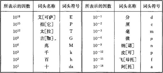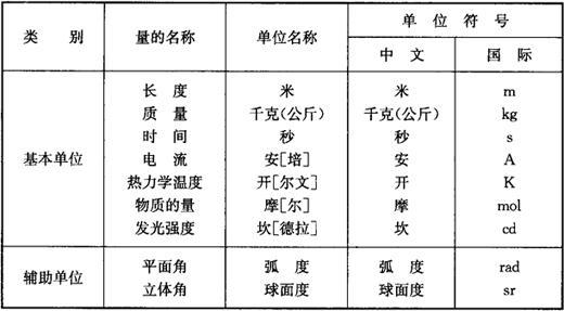 | 释义 | 国际单位制 国际单位制是1960年第11届国际计量大会通过的,其国际简称SI。中华人民共和国法定计量单位包括国际单位制的基本单位和辅助单位,见表1-8;国际单位制中具有专门名称的导出单位见表1-9;用于构成十进倍数与分数单位的词头见表1-10。 表1-8 国际单位制的基本单位和辅助单位