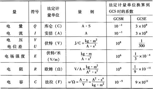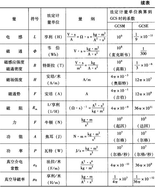 表14-5 电磁量的法定计量单位与克厘米秒制(GCS)换算