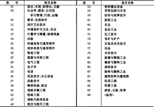 ICS是一部数字等级制分类法,各级类目均采用阿拉伯数字作为标识符号,即大类以两位数字表示;二级类以三位数字表示;三级类以两位数字表示。为了醒目与易读,各级类号之间用圆点隔开。