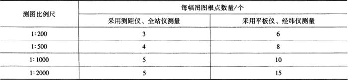 | 释义 | 图根控制测量 1)图根点测量宜在施工区各等级控制网点下进行。 2)图根点的精度以相对于邻近控制点的中误差来衡量。其中,点位中误差不应超过图上±0.1mm;高程中误差不应超过测图基本等高距的±1/10。 3)图根点的密度根据地形、采用的仪器和测量方法确定,其基本要求见表13-3。 表13-3 每幅图图根点数量要求