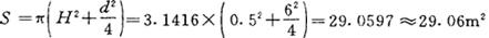 〔计算例〕 有立式油罐封头,已知封头高(H)0.50米,直径6.00米,如图1-11所示,求封头表面积。