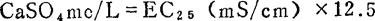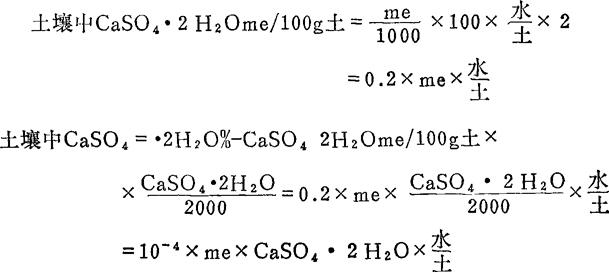 或者用电导法测得土水比为1∶10的浸出液中总盐me/100g土减去饱和浸出液中总盐的me/100g土,即可认为是CaSO4·2H2O的大概含量(me/100g土)。 |