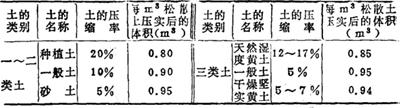 (三)土的工程性质 1.土的可松性 土的可松性为土经挖掘以后,组织破坏,体积增加的性质,各类土的可松性系数见表17-92。 表17-92 各类土的可松性系数参考数值