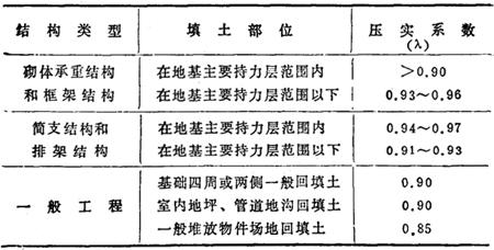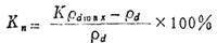 式中 Kn——土压缩率; ρ——土压实后的干密度(g/cm3); ρd——原状土的干密度(g/cm3)。 也可用最大密实度时干密度ρdmax(g/cm3)与压缩系数K值计算压缩率。