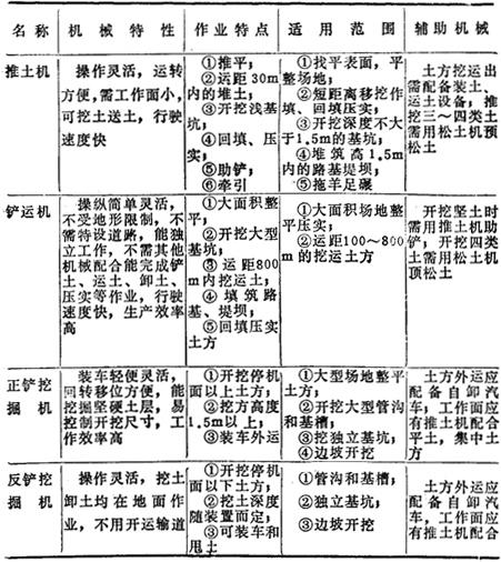 (六)一般常用土方机械的特性和适用范围(表17-101) 表17-101 常用土方机械特性、适用范围