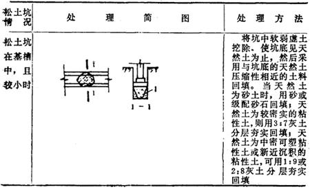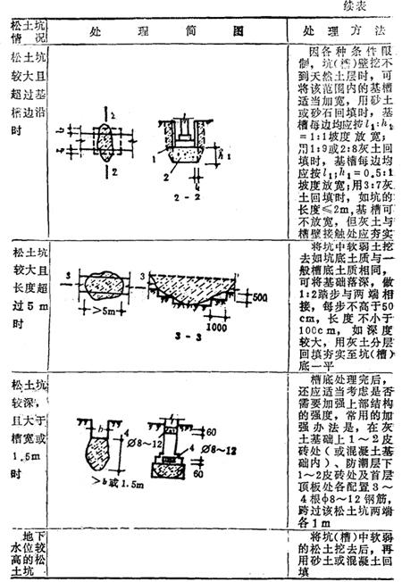 (九)地基局部处理 (1)松土坑(填土、淤泥、墓穴)的处理见表17-108。 表17-108 松土坑的处理