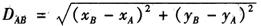 如图8-2所示,求出坐标A(xA,yA)和B(xB,yB)后,则用下列公式计算。