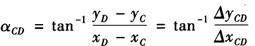 上式计算出的角值为象限角,再根据△xCD和△yCD的正、负值求得直线CD的坐标方位角。 |