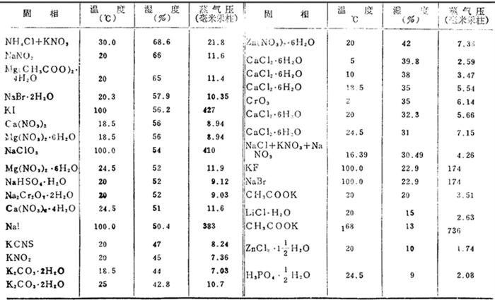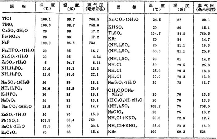 在密封容器中给定溶液的相对湿度