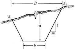 管道中线控制桩定出后,就可根据管径大小、埋设深度以及土质情况,决定开槽宽度,并在地面上钉上边桩,然后沿开挖边线撒出灰线,作为开挖的界限。如图14-20所示,若横断面上坡度比较平缓,开挖宽度可用下列公式计算:
