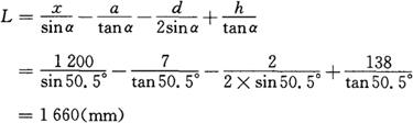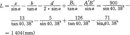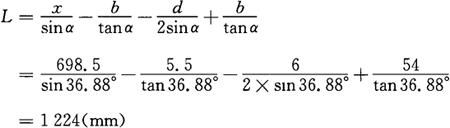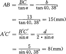图3-173 计算原理图 (a)按外皮;(b)按里皮 (1)按外皮切断计算[见图3-173(a)] 在直角三角形ACB中