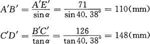 图3-169 H钢与槽钢、H钢斜拉撑切头样板计算原理 在直角三角形A′B′C′和A′D′E″中