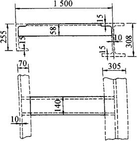 图3-164 槽钢与槽钢、H钢垂直拉撑 ①拉撑全长L=1485mm。 ②槽钢与槽钢的切头样板[见图3-165(a)]。