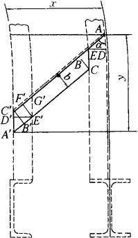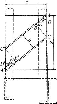 图3-161 不等边角钢与H钢、槽钢斜拉撑计算原理图 在直角三角形ABC和A′B′C′中