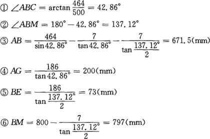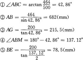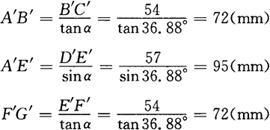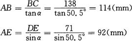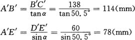 (4)H钢与H钢切头样板(见图3-169右侧) 在直角三角形ABC和ADE中