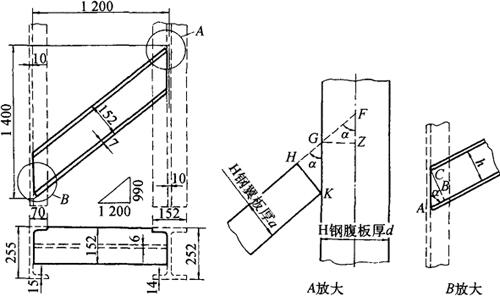 图3-168 H钢与槽钢、H钢斜拉撑 (1)斜拉撑顶角