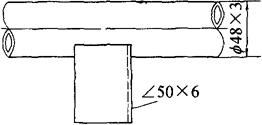 图3-177 角钢展开图 (2)倾斜式栏杆 如图3-178所示,为倾斜栏杆施工图,同上例一样,也应以栏杆的内侧平齐为合理。另一特点是,由于管体栏杆倾斜,角钢的斜面为里皮接触,弧面为外皮接触。