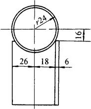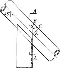 图3-178 倾斜的管与角钢栏杆 图3-179为展开图,图3-180为A-A断面和计算原理图,由于倾斜相交,角钢弧面处的断面是一个椭圆,半短轴为24mm,半长轴为34mm,其计算方法参见图3-178之三角形BCE。