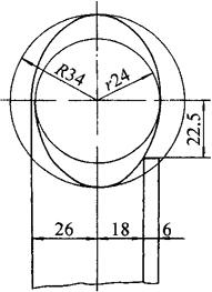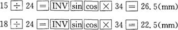图3-180 A-A和计算原理 24÷sin45°=34(mm) 展开料椭圆断面各数据计算如下。 设和点的横坐标为15mm和18mm,那么,各对应点的纵坐标计算器手工计算程序是: