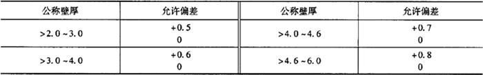 注:1.公称压力PN为管材在20℃时的工作压力; 2.管系列S由设计应力与公称压力之比得出。 5.壁厚偏差(表7-92) 表7-92 埋地给水用聚丙烯管材的壁厚偏差mm