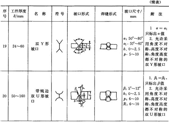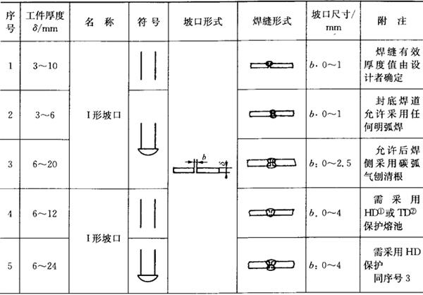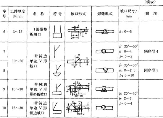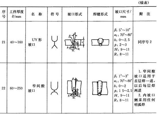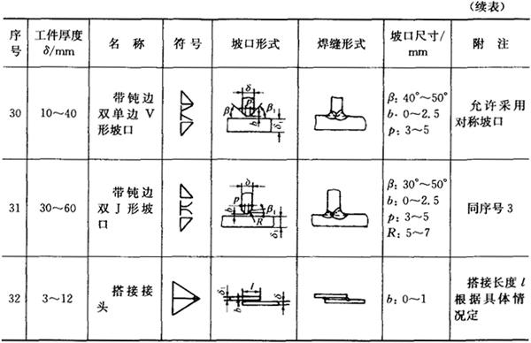 | 释义 | 埋弧焊工艺 (一)焊前准备 1.焊接接头形式和焊缝坡口形状 表3.2-4系按照GB/T 986-1988《埋弧焊焊缝坡口的基本形状和尺寸》选定焊缝的坡口形状和尺寸。 表3.2-4 埋弧焊焊缝坡口的基本形状和尺寸(GB 986-88)