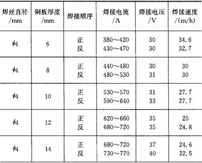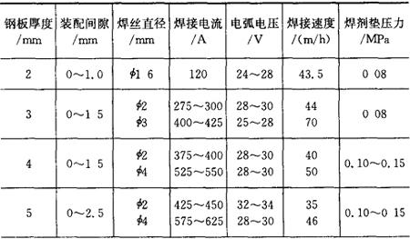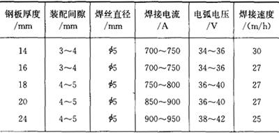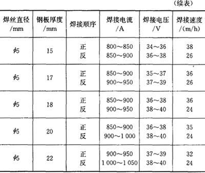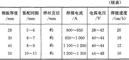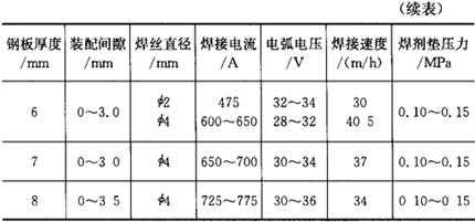 表3.2-7 焊剂垫预留间隙的双面焊焊接工艺参数