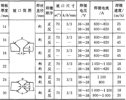 注:焊接用交流电,焊剂431。 表3.2-8 焊剂垫带坡口的双面焊焊接工艺参数