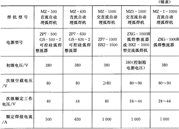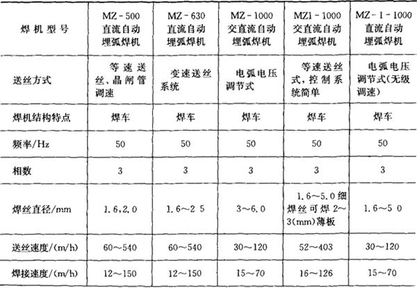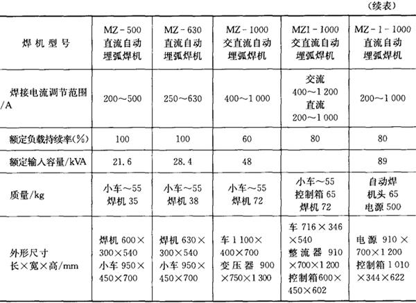 | 释义 | 埋弧焊设备 埋弧焊设备主要由焊接电源、机械结构(送丝机构、行走机构)和控制系统(电源外特性控制、送丝和小车拖动控制及程序自动控制)等三个部分组成。 表3.2-3为常用埋弧焊机的主要技术参数。 表3.2-3 常用埋弧焊机的主要技术参数