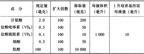 (3)铁盐母液 称量乙二胺四乙酸二钠7.45克加入蒸馏水900毫升于100℃水浴中充分溶解,称量5.57克硫酸亚铁(FeSO4·4H2O),逐渐倒入溶解后,使溶液冷却至室温,然后定容于1000毫升容量瓶中,置于棕色试剂瓶中保存。每配1升培养基加这样的铁盐母液5毫升。 (4)有机物母液的配制 氨基酸及维生素类物质分别用容量瓶配制成100倍的母液,在配制培养基时,每配1升培养基取10毫升母液即可。参见表2-4。 表2-4 MS培养基有机物母液配制法