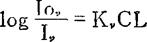 公式中:Iv——吸收后频率为v的光强; Iov——光源频率为v的光强; e——自然对数; Kv——吸收系数; C——原子浓度; L——火焰厚度。 将上式化为: