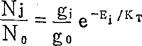 当绝对温度T达到温度平衡时(即等温状态,热力学平衡的条件下),激发态与基态原子数目的比值,原子按能级分布,可近似服从波茨曼(Boltzmann)分布定律,由公式表示如下: