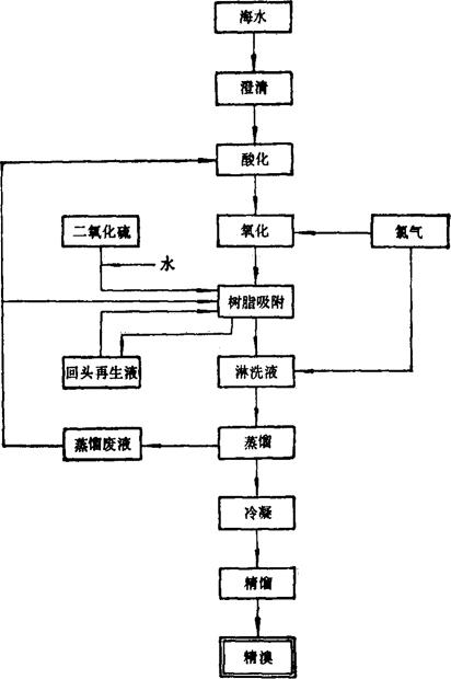 图6-3-21 树脂吸附法海水制溴工艺流程图 |