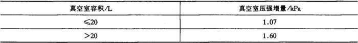 2.1 在外界标准大气压下,真空室的初始压强不得大于1.33kPa,经1min泄漏其压强增量不得大于表2-5-1所示数值。