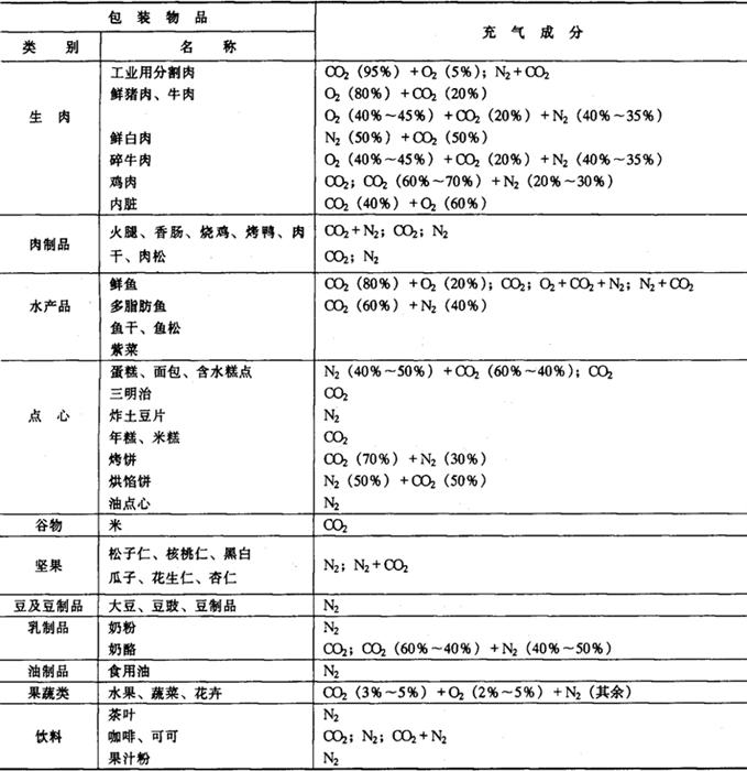 2.6 常用包装物品充气成分和常用复合薄膜如表2-5-4和表2-5-5所示。