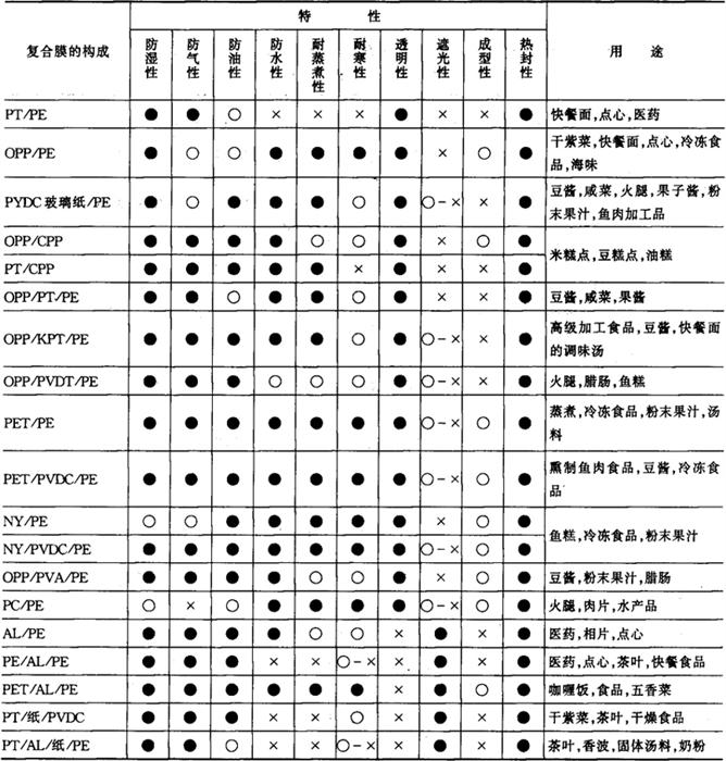 表2-5-5 常用复合薄膜的构成与特性、用途