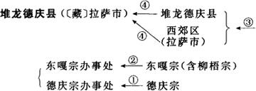 ①1951年设德庆宗;1956年9月改为德庆宗办事处。②1951年设东嘎宗(含柳梧宗);1956年11月东嘎宗改为东嘎宗办事处。③1959年9月德庆宗办事处、东嘎宗办事处合并成立堆龙德庆县与西郊区(拉萨市)。④1960年2月堆龙德庆县与西郊区合并成立堆龙德庆县。