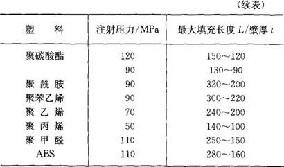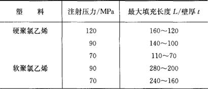 表2.2-25 注射压力一定时的L/t值