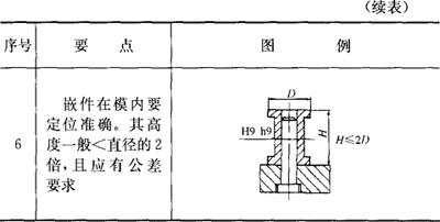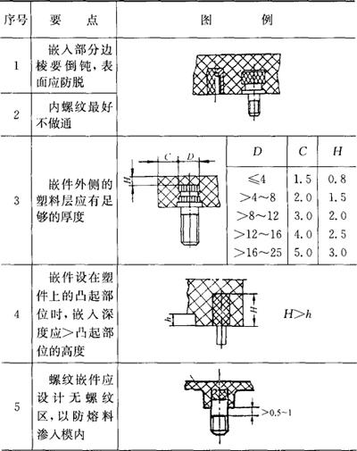 6.金属嵌件(表2.2-31) 表2.2-31 嵌件设计要点