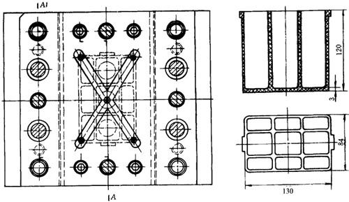 图5-10(b) 塑料盒注塑模具俯视图及塑件图