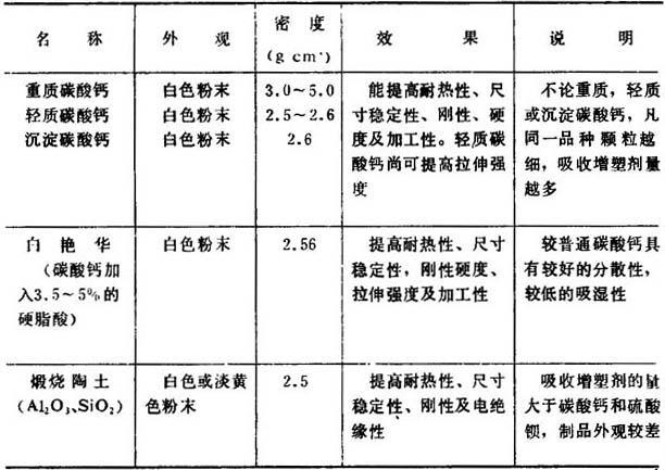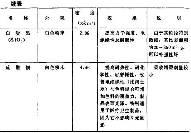 几种常用填充剂的性状与填充效果见表2-3-1。